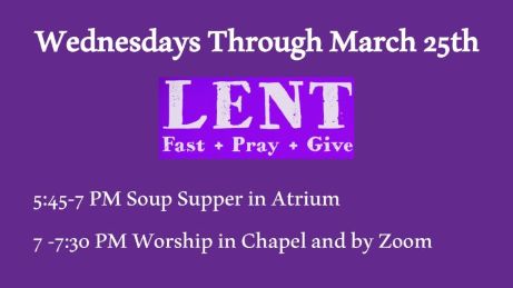 In-person Worship 8AM in Chapel and In-person and Livestream 10 AM in Sanctuary
